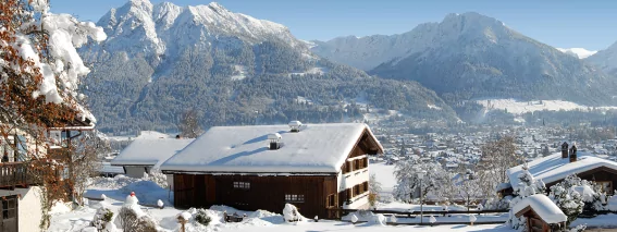 Unser Landhaus Theresa ist ein Ferienwohnungs-Anwesen in herrlich, sonniger Südlage, im Oberstdorfer Ortsteil Jauchen. Wir vermieten komfortable Ferienwohnungen im Landhausstil mit Panoramablick. Das Bild oben zeigt die Aussicht von unserem Landhaus.